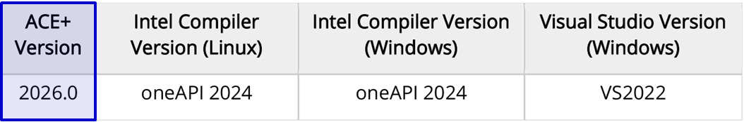 아래 표는 V2026.0에서 User Subroutine에 지원되는 Intel® Fortran 컴파일러 및 Microsoft® Visual Studio 버전을 나타냅니다.